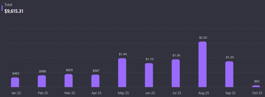 This sleeve saw the steepest decline, ending the month at $16,485, down 25.2%. The pullback came mainly from the correction in Bitcoin, which moved from $111,000 to the low $80,000 range. MSTY fell 29.6% and CONY dropped 24.6%, reflecting their high sensitivity to crypto volatility. The exposure remains part of the long term income strategy, but the month highlighted the cost of carrying high beta positions during a volatility cooldown.