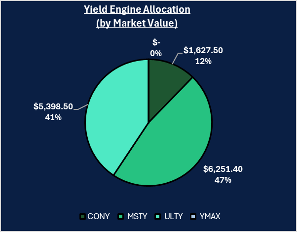 Dividends were $645 (MSTY, ULTY, CONY), options added $222 through SOFI.